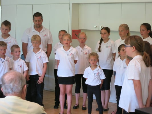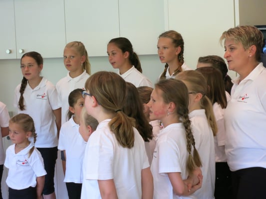 Geschenkübergabe für unsere Chörli-Leiterin Sibylle Heer Fries zu ihrem runden Geburtstag und Anerkennung für eine jahrelange tolle Arbeit zur Förderung unserer Kinder